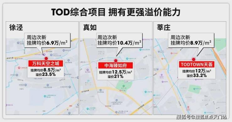 相比普通楼盘, TOD综合项目本身也有较强的溢价能力 ,莘庄天荟、万科天空之城等TOD项目都已给出有说服力的结论。