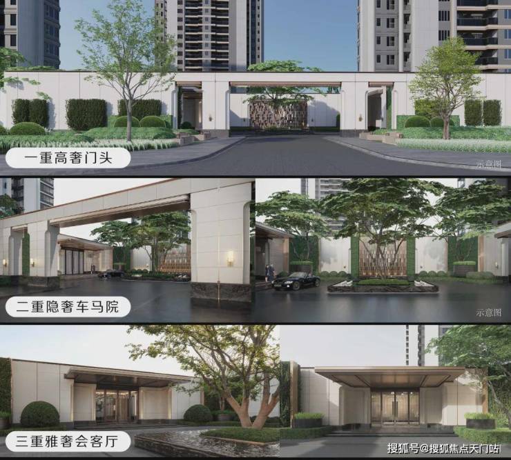 五重:高奢门头、隐奢车马院、雅奢会客厅、矜奢水院、轻奢门厅